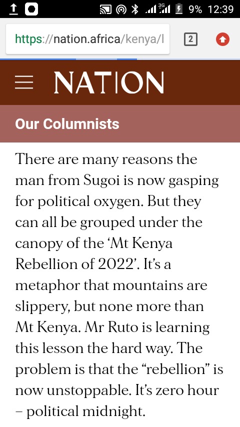 Mt Kenya embodies the idea that mountains are slippery. Mr Ruto is learning the hard way. The problem is that the “opposition” has grown invincible. It’s 0 o’clock, often known as political nightfall.