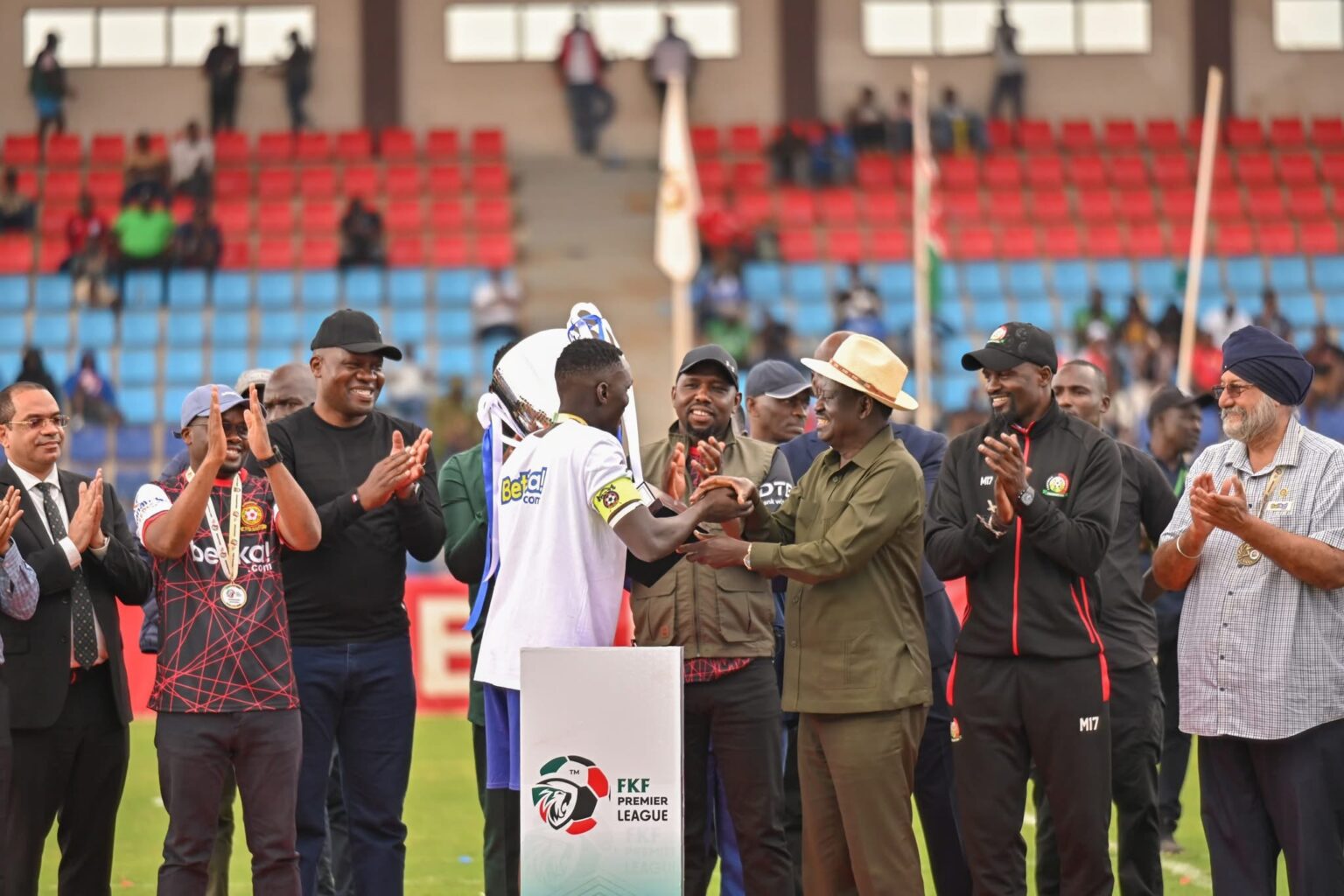 Former Harambee Stars legend George Sunguti handed over the newly designed FKF trophy, as fans cheered the club’s first-ever league triumph.